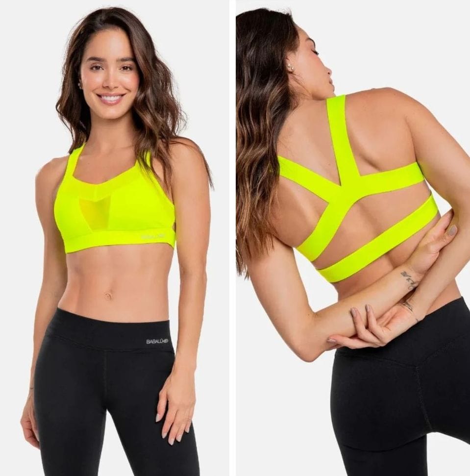 Top elaborado en telas de alto rendimiento para ropa deportiva que combina poliamida y elastano, ofreciendo compresión, elasticidad, secado rápido y protección UV.